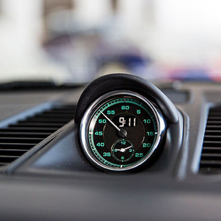 El vehículo del aniversario tiene las cubiertas exclusivas de los asientos hechas a mano, así como muchos otros detalles individuales. El tablero de instrumentos cuenta con la inscripción ‘1.000.000 911’ y tanto los números como la iluminación son de color verde brillante. Los relojes circulares tienen un ribete de plata, igual que en el arquetipo de 1964, así como también el reloj Sport Chrono. Otro toque de acabado único es el volante deportivo con la cresta Porsche de 1964 en el centro. El borde de caoba hecho a mano es una reminiscencia de los volantes de madera que eran todavía un distibtivo obligado de los autos deportivos en la década de 1960. La cresta del capó es la misma cresta que figura en el 911 original. El centro de los rines cuenta con la inscripción ‘911’. El logotipo de PORSCHE aparece en letras blancas pintadas sobre las pinzas de los frenos negras y en color oro en la tapa del maletero. Las insignias con el grabado ‘1.000.000’, que se encuentran en el exterior en el pilar B y en el interior en la consola, indican el estatus especial del modelo aniversario.