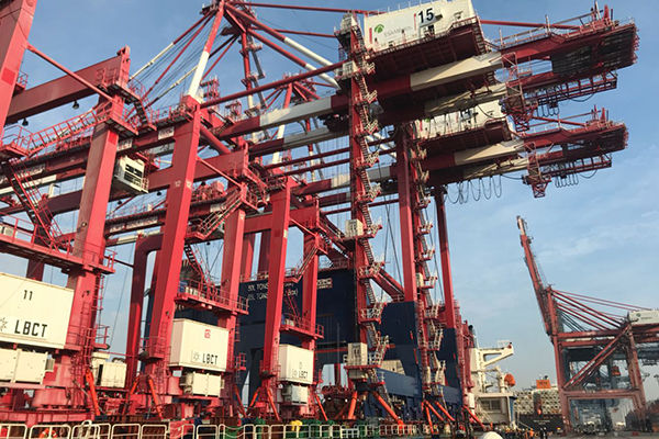A bordo del barco Dongbang Giant 7, navegan hacia Manzanillo las grúas RTG y las STS, fabricadas por la compañía mundial de equipos portuarios Shanghai, Zhenhua Port Machinery Company (ZPMC).